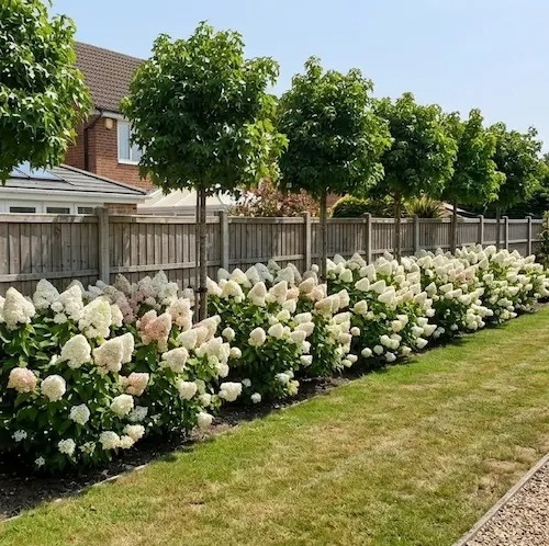 • Nowoczesny żywopłot: Posadzona w rozstawie co 100 cm stworzy nieprzepartą ścianę bieli, która zapewni prywatność i luksusowy wygląd posesji.
